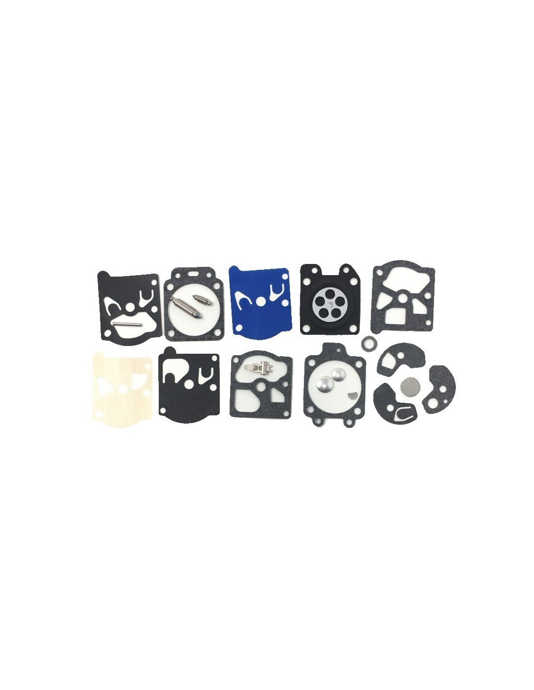 Completo kit de reparación adaptable a carburadores de la marca Walbro, con todas las piezas necesarias para una reparación rápida y sencilla.