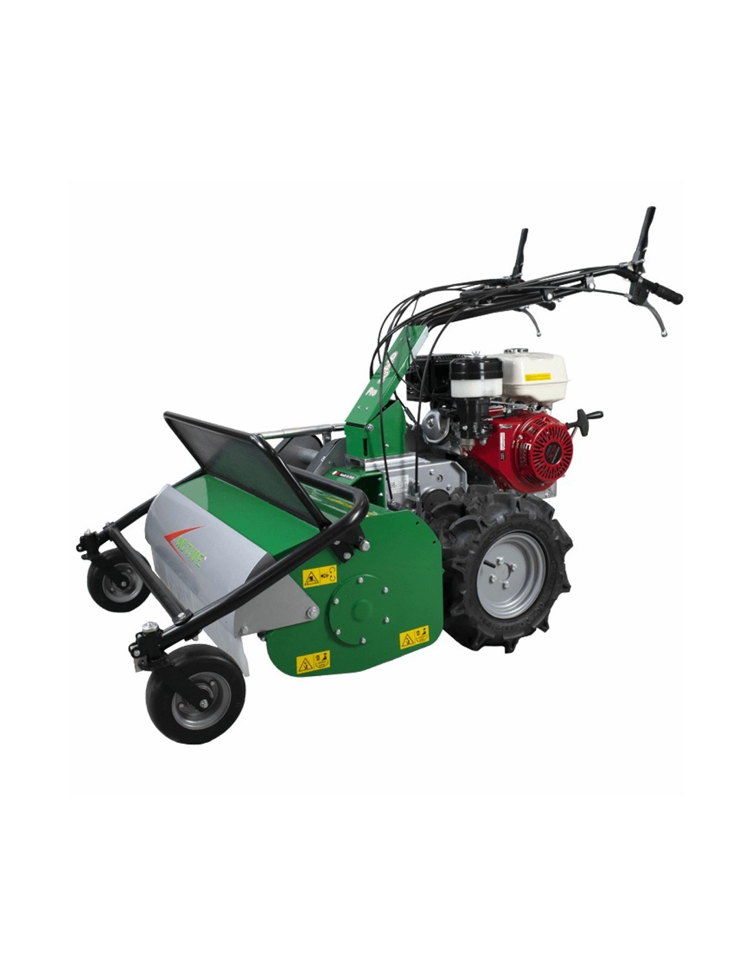 Desbrozadora de martillos con ruedas gemelas.