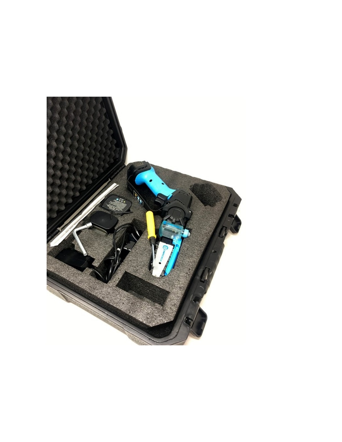 La podadera se suministra con dos baterías, con la posibilidad de comprar un cable para la conexión en el cinturón del operario